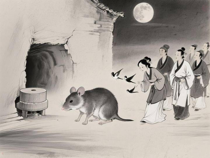 老耗子愁得几宿没合眼,在洞里转磨磨。耗子婆娘看不过去,出了个主意:“老头子,我看定在正月十七夜里办。一来,人间年节刚过,杯盘狼藉,正是咱们寻食的好时辰;二来,那些家猫被主人家好鱼好肉喂饱了,懒怠动弹。咱们接亲队伍鸟悄地去,鸟悄地回,兴许就瞒过去了。”
